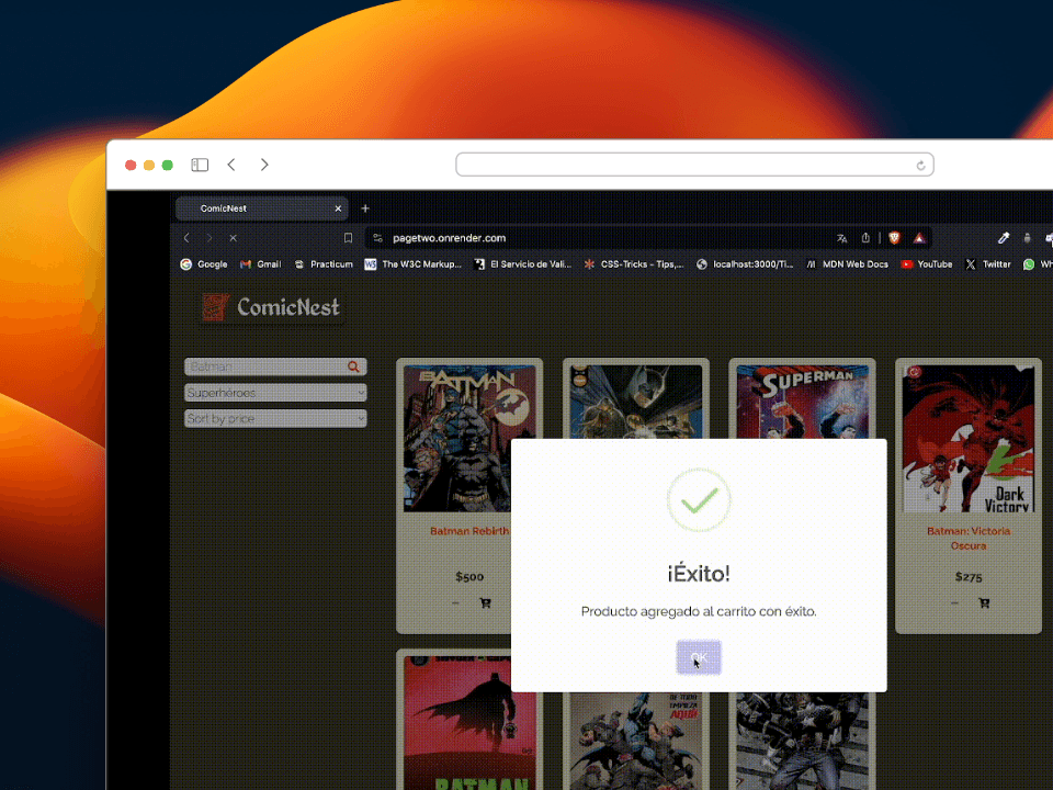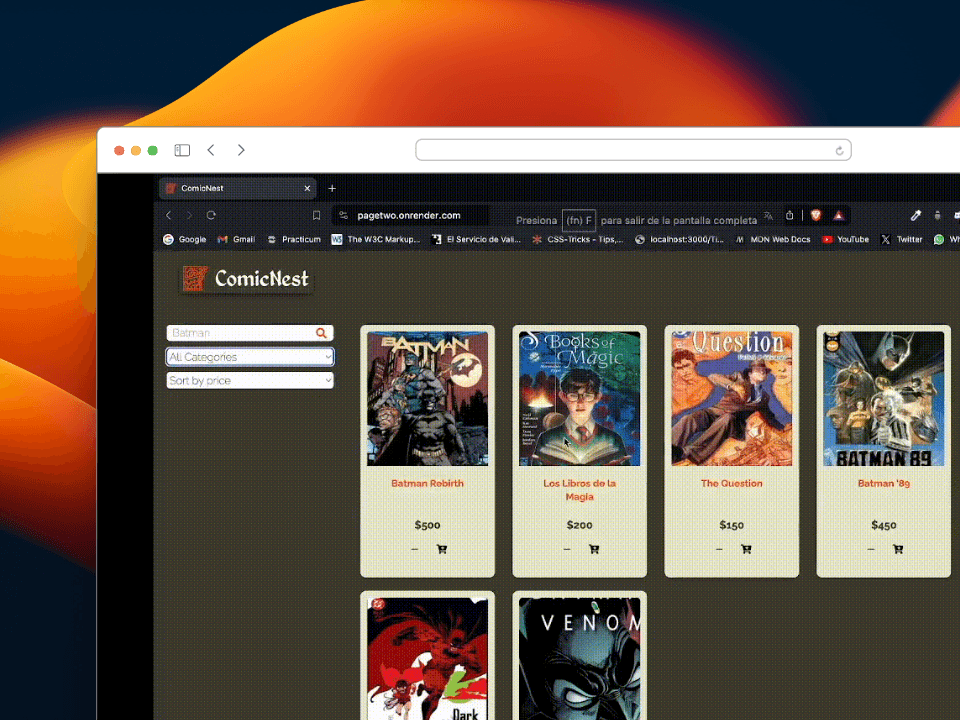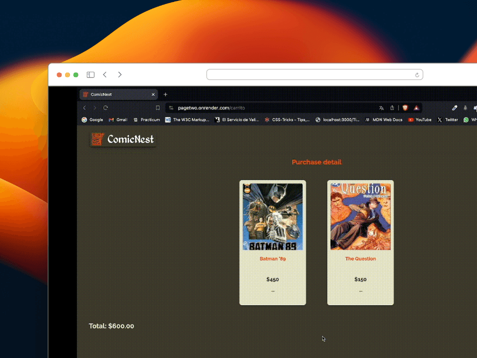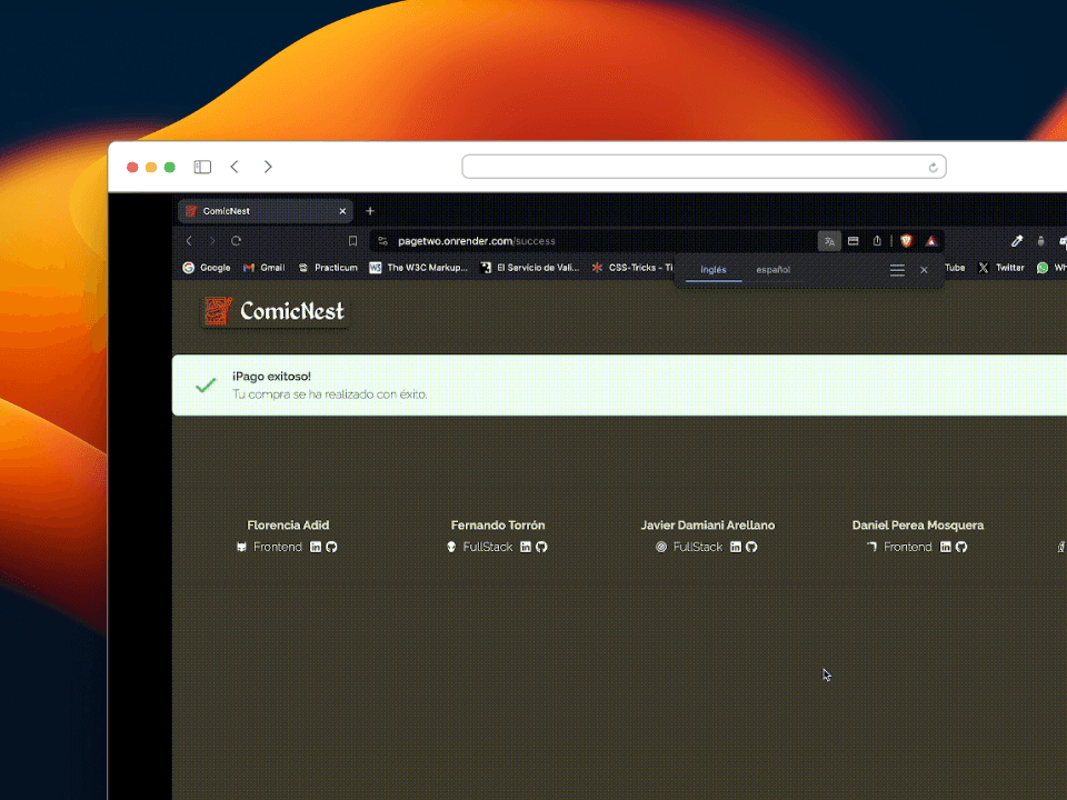 我参加了 NoCountry 的模拟工作,在那里我与一个多学科团队合作开发了一个漫画电子商务项目。我学会了使用 React、Node.js、MongoDB 和 Cloudinary 等技术,为网站的设计和开发做出了贡献。此外,我还在实际的学习环境中获得了敏捷方法、有效沟通和团队合作方面的技能。